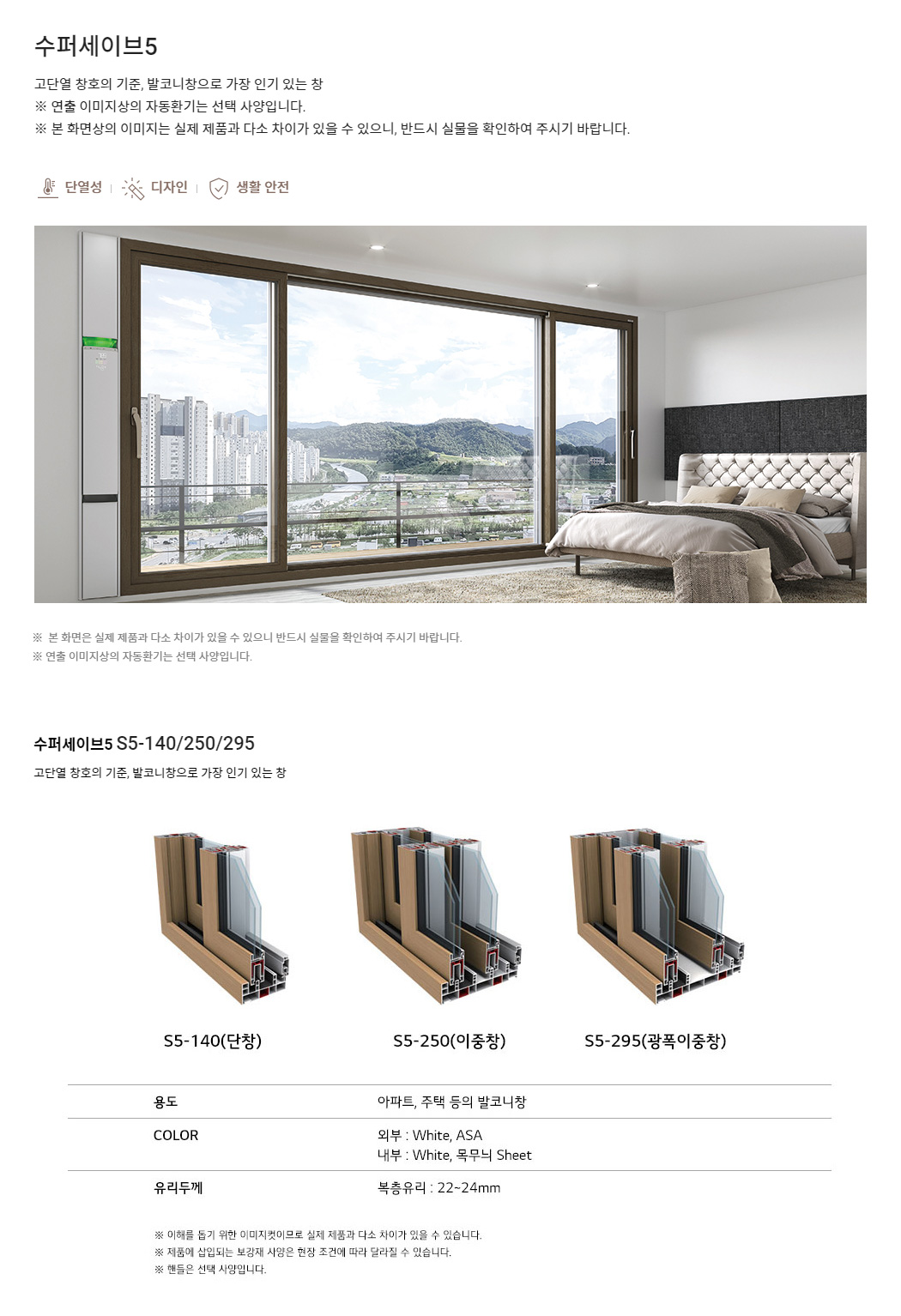 뒤틀림과 변형이 거의 없어 주거용 창호로 가장 많이 쓰는 소재로 발코니창, 방창 등 시공 공간에 따라 다양한 컬러 및 패턴 표현으로 다양한 제품을 선택할 수 있습니다.