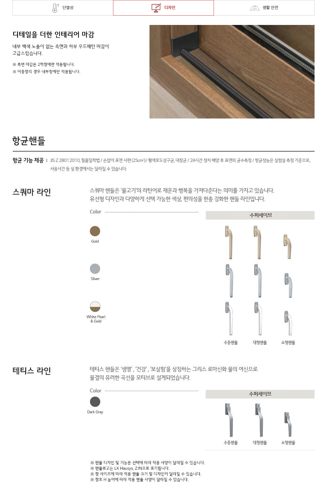 뒤틀림과 변형이 거의 없어 주거용 창호로 가장 많이 쓰는 소재로 발코니창, 방창 등 시공 공간에 따라 다양한 컬러 및 패턴 표현으로 다양한 제품을 선택할 수 있습니다.